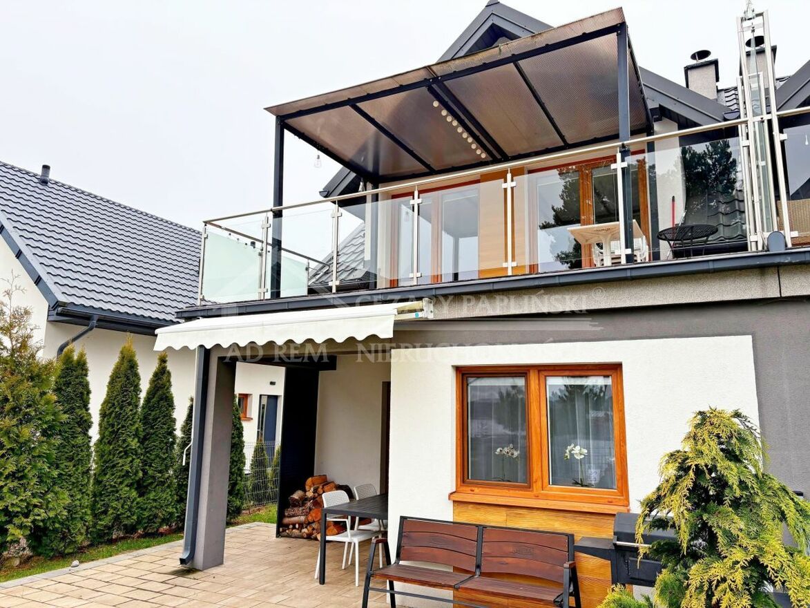 Dom piętrowy z przestronnym tarasem i balkonem